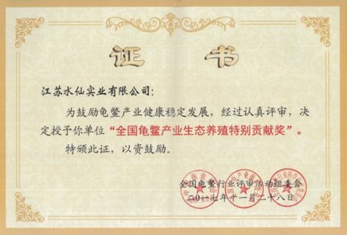 全國龜鱉產(chǎn)業(yè)發(fā)展創(chuàng)新特等獎別貢獻(xiàn)獎